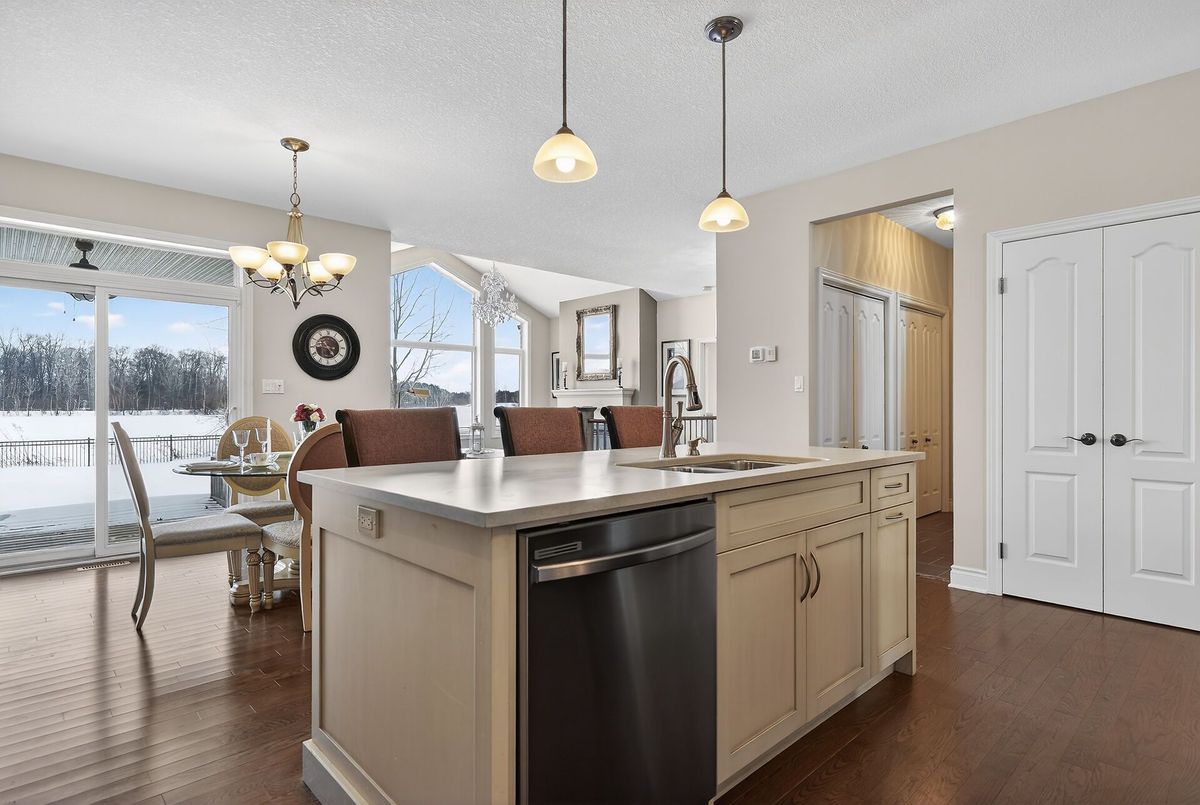 Set along the edge of Lake Margaret, this well-maintained 2-bedroom bungalow (built in 2010) offers a peaceful setting with everyday convenience. The open-concept main floor features a bright living room with a large picture window overlooking the backyard and lake, seamlessly connected to the kitchen and dining area. The primary bedroom includes a walk-out to the backyard, allowing you to enjoy lake views and direct access to the outdoors. A fully finished basement with a dedicated movie theatre adds valuable living and entertaining space, all located in a quiet, sought-after St. Thomas neighbourhood close to trails and amenities, where lake views, walking paths, and wildlife sightings create a truly peaceful setting.